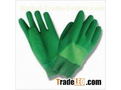 Interlock green cotton liner, green color knitted wrist, open back, coated with green latex, crinkle finished